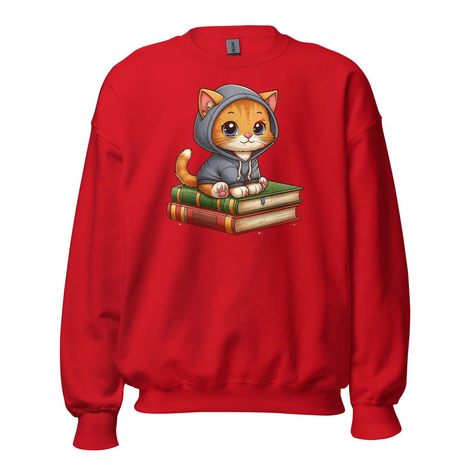 In a charming cartoon vignette, a sweet brown kitten perches atop a...