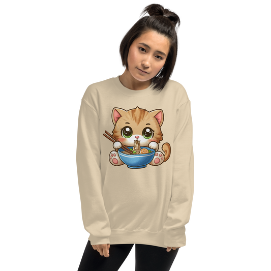 Brown Kitten - Eating Ramen - Preshrunk Sweatshirt