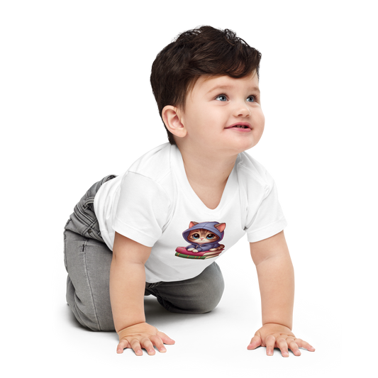 Meet Fluffy, the adorable cartoon baby kitten! With wide, curious eyes and a playful demeanor, Fluffy sits atop a vibrant blue ball, balancing precariously with its tiny front paws. Ready for adventure and mischief, Fluffy is the epitome of feline charm and curiosity!