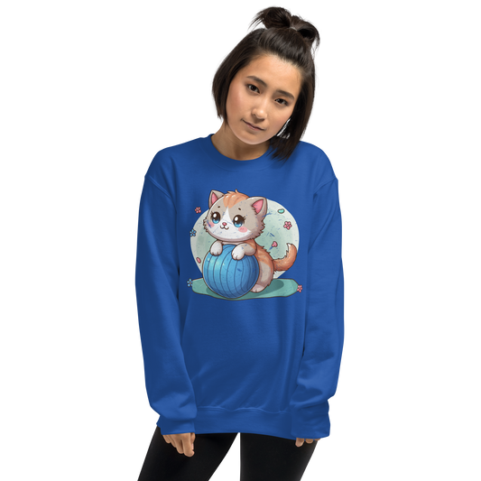Brown Kitten on Blue Ball - Preshrunk Sweatshirt