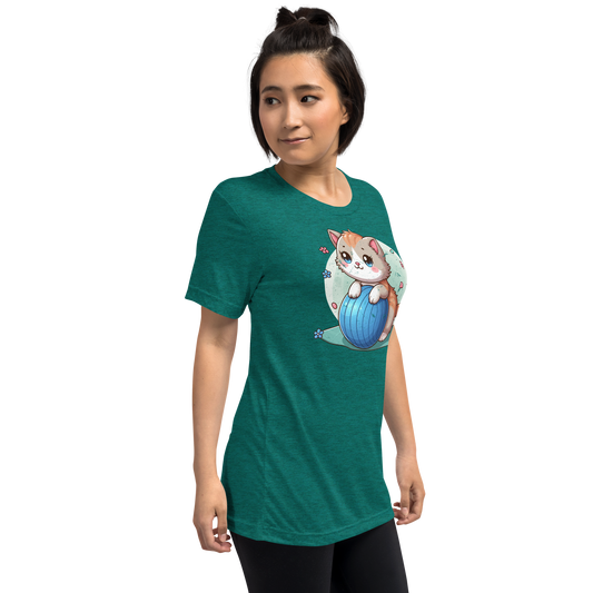 Brown Kitten on Blue Ball - Unisex Triblend Tee