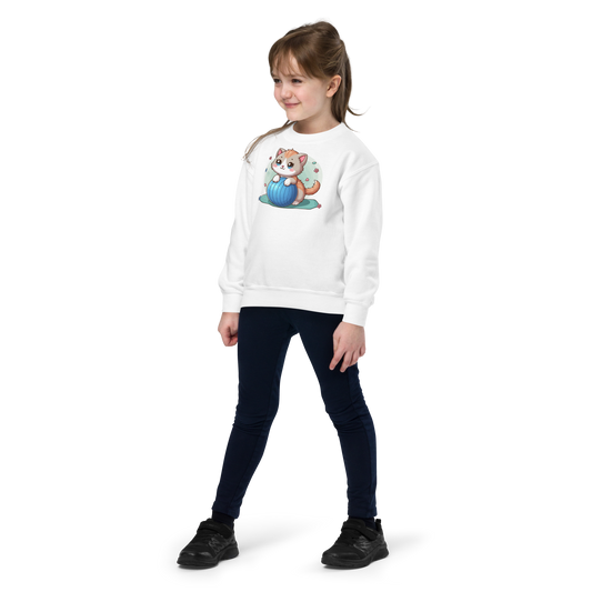 Brown Kitten on Blue Ball - Youth Sweatshirt