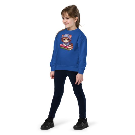 Brown Kitten - Sitting on Books - Youth Sweatshirt