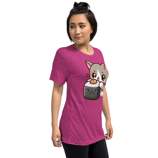 Grey Kitten - Eating Sushi - Unisex Triblend Tee