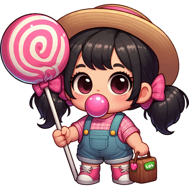 Capture the sweet innocence of childhood with our delightful design. A darling baby girl stands tall, her brunette hair styled in playful pigtails. With a basket in one hand and a lollipop in the other, she exudes joy and wonder. Caught mid-bubble, it creates a whimsical scene that's perfect for spreading smiles wherever you go.