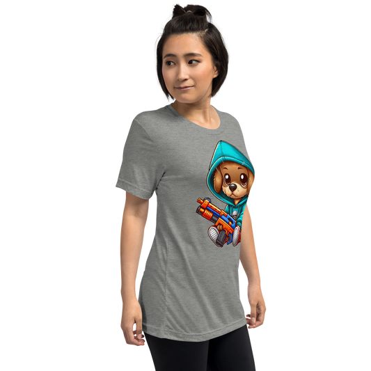 Brown Puppy with Foam Dart Blaster - Unisex Triblend Tee