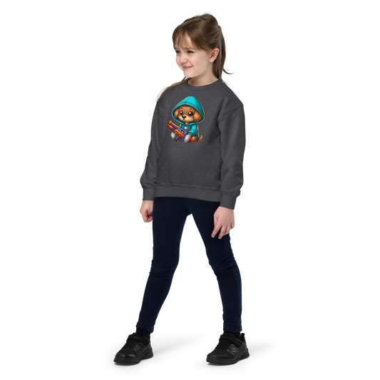 Brown Puppy with Foam Dart Blaster - Youth Sweatshirt