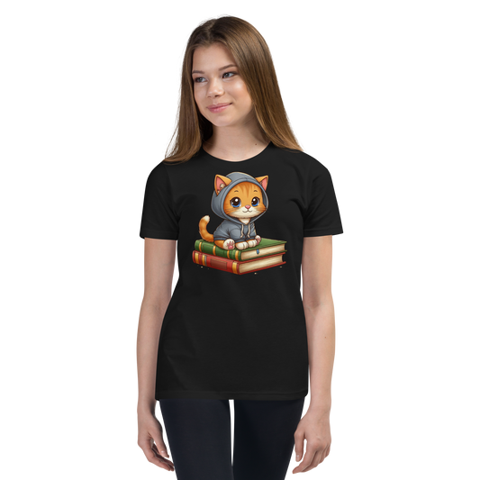 Orange Kitten - Sitting on Books - Youth Staple Tee