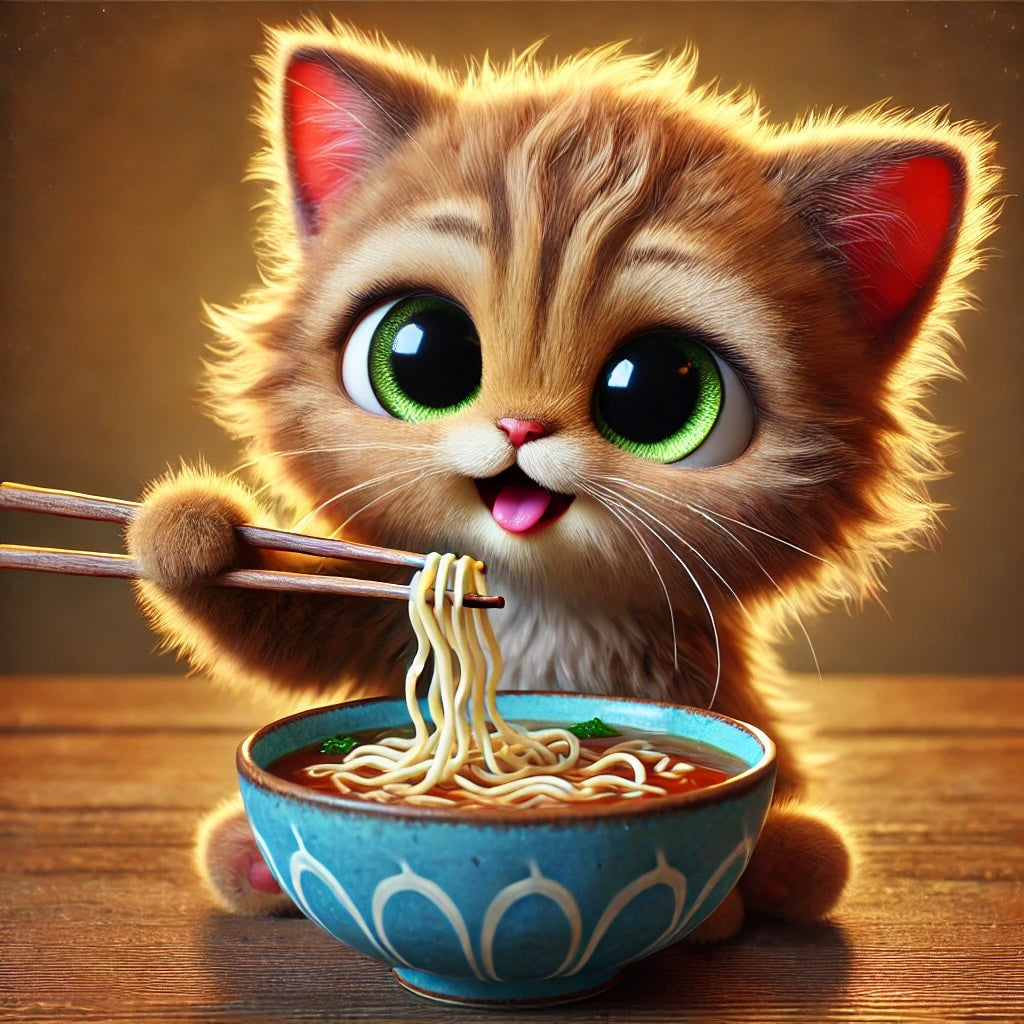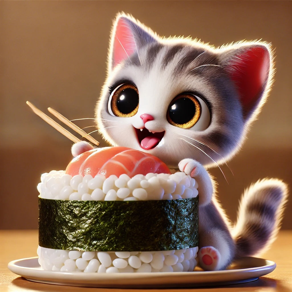 Read my StoryAlways on a quest for the perfect sushi. He’s small but determined, often sneaking into the kitchen when food is around. He and Noodle have a friendly rivalry about which food is better—ramen or sushi!