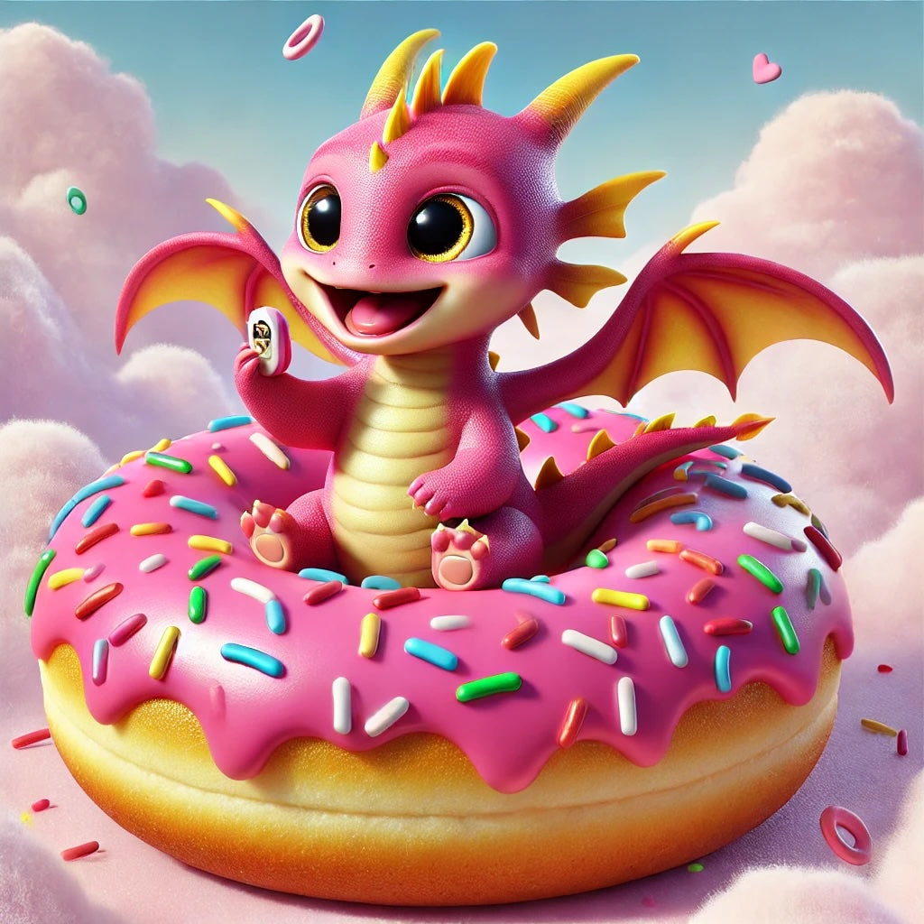 Read my StoryA sweet and gentle dragon who loves donuts more than anything. She often bakes treats for the farm animals and loves inventing new flavors—sometimes with hilarious results.