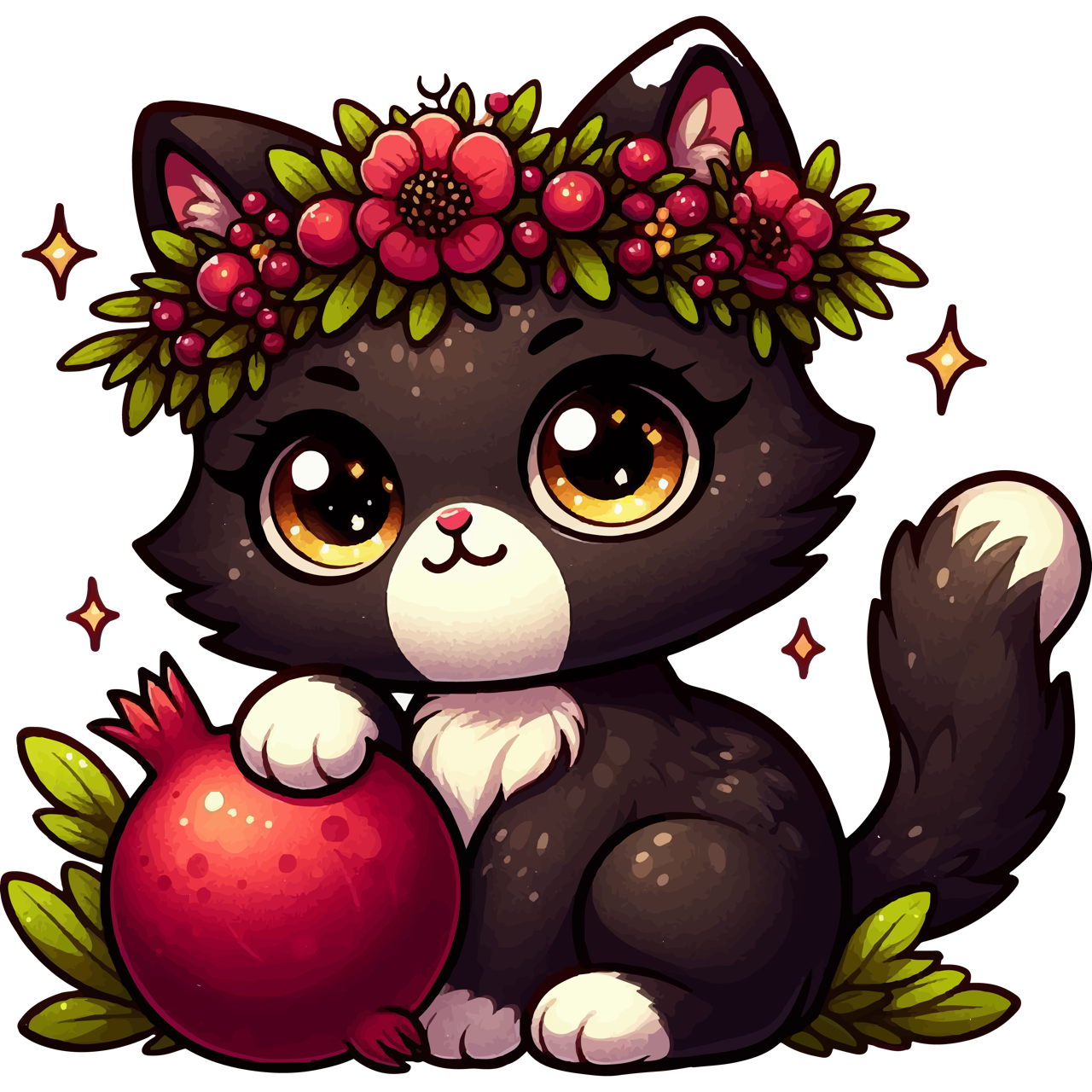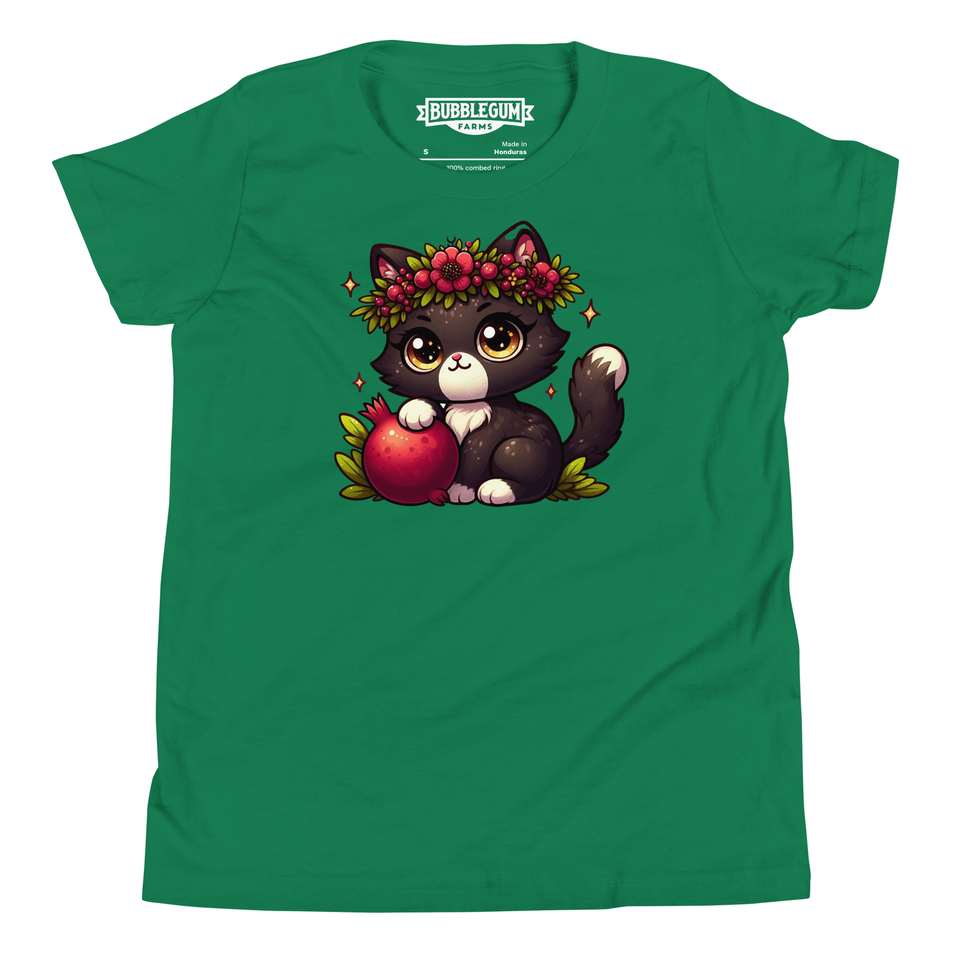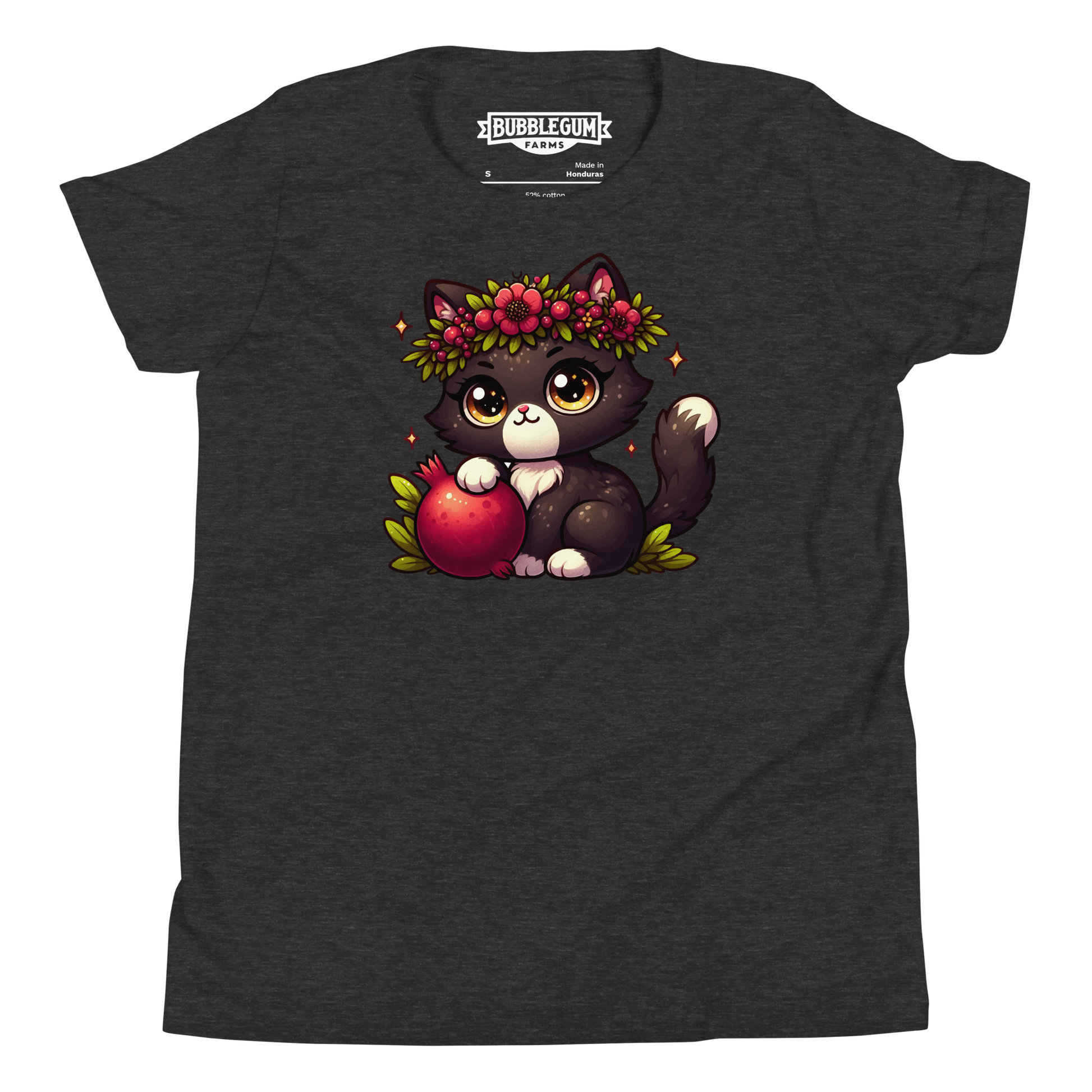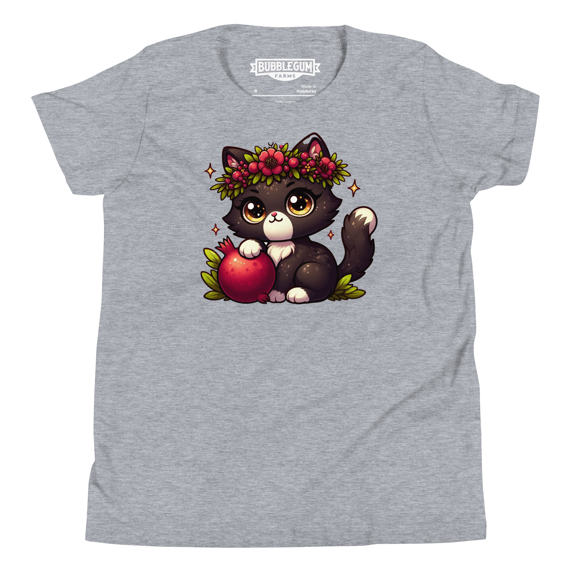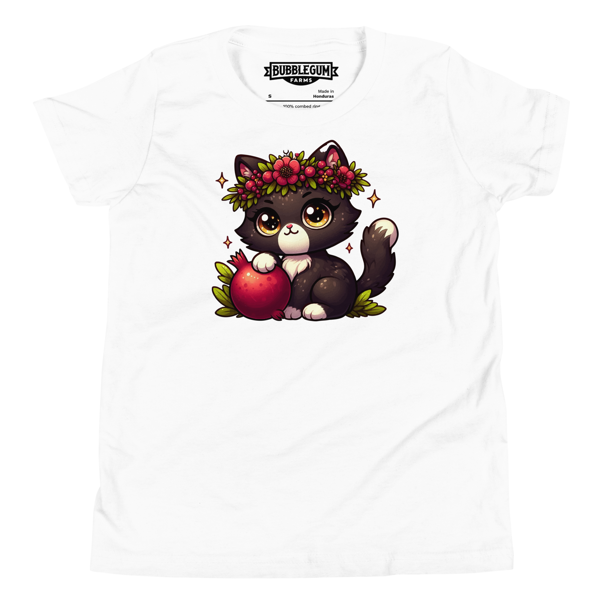 Black Kitten with Red Flowers - Youth Staple Tee