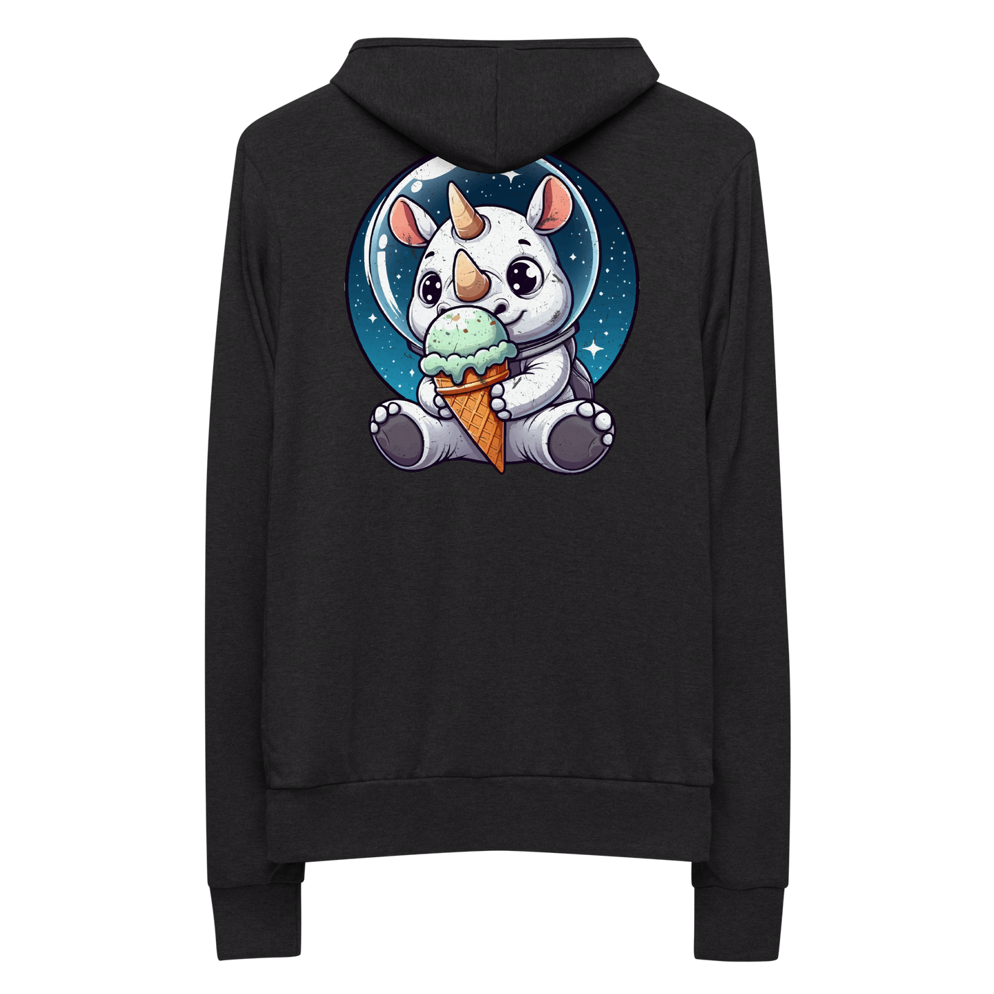 Space Rhino - Eating Ice Cream - Lightweight Zip Hoodie